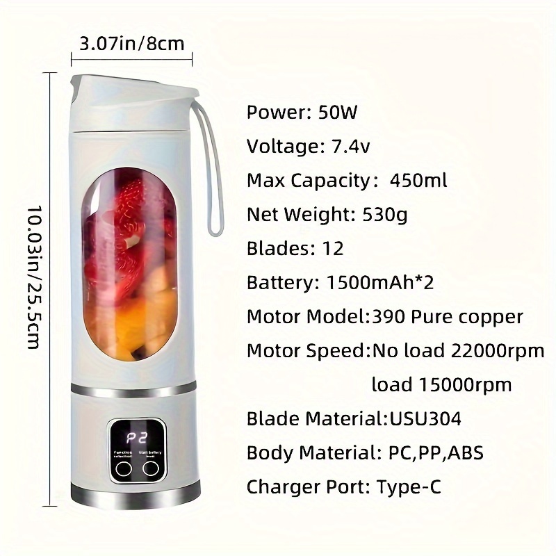 Mini Juice Blender, Portable Electric Usb Rechargeable Travel Blender, Three Modes, Digital Display, 12 Blades, Easy To Clean