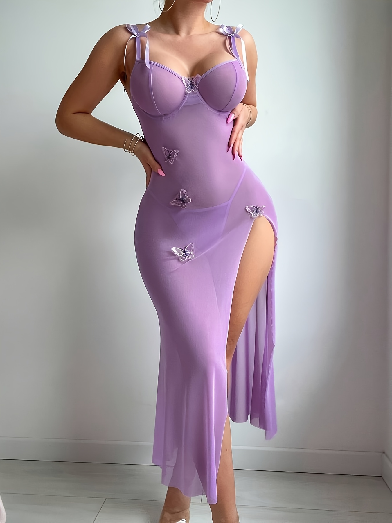 Style Women's Purple Charming Passionate See-through Lace Pajama Set