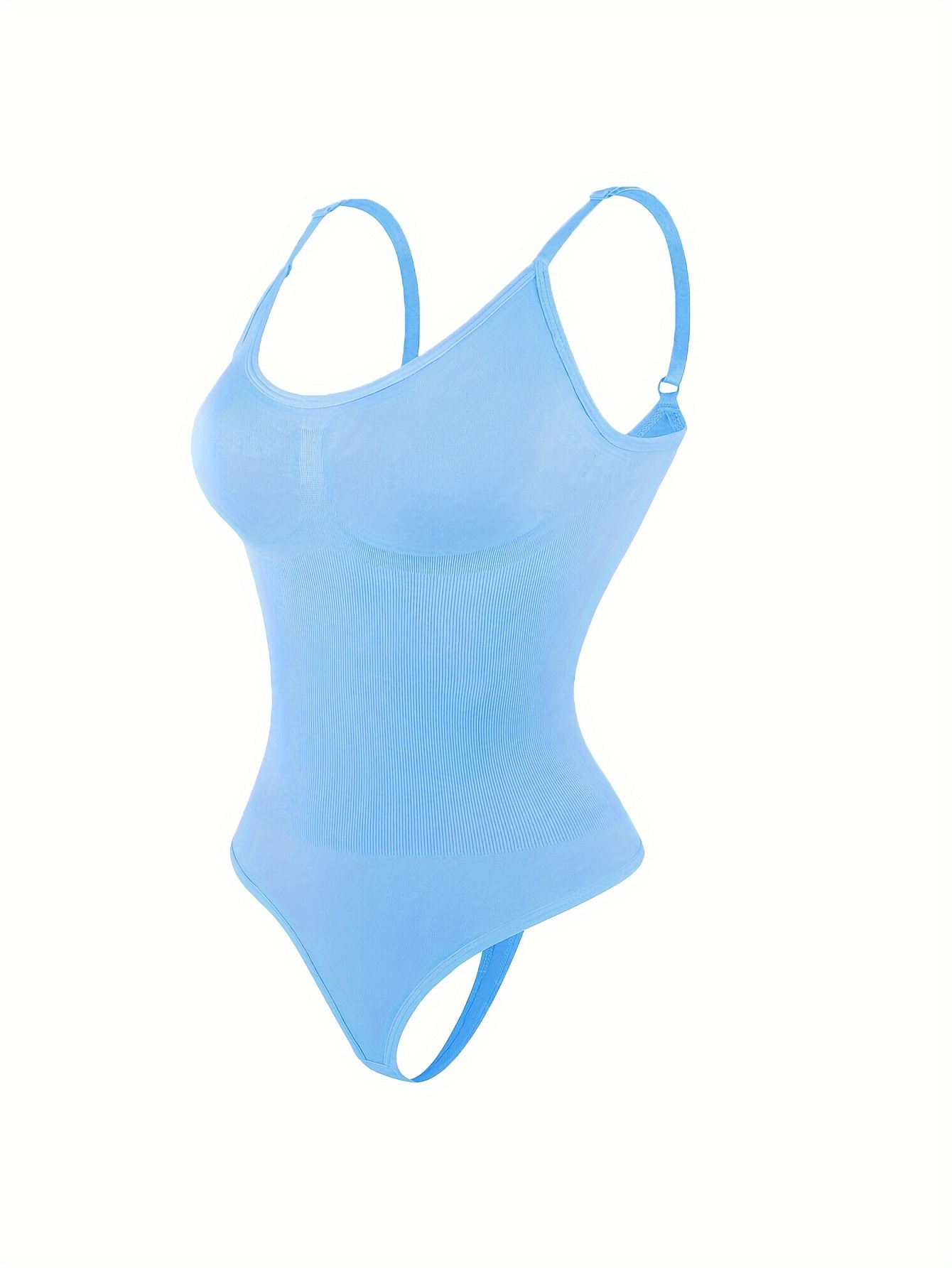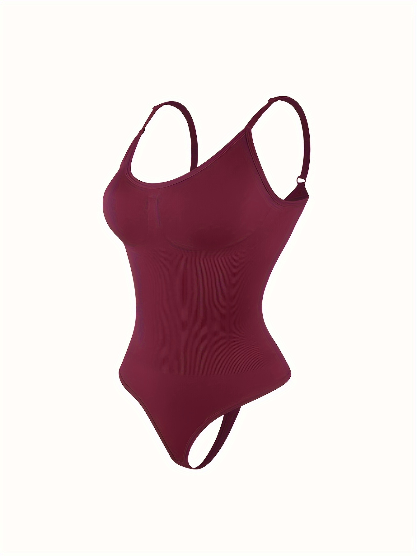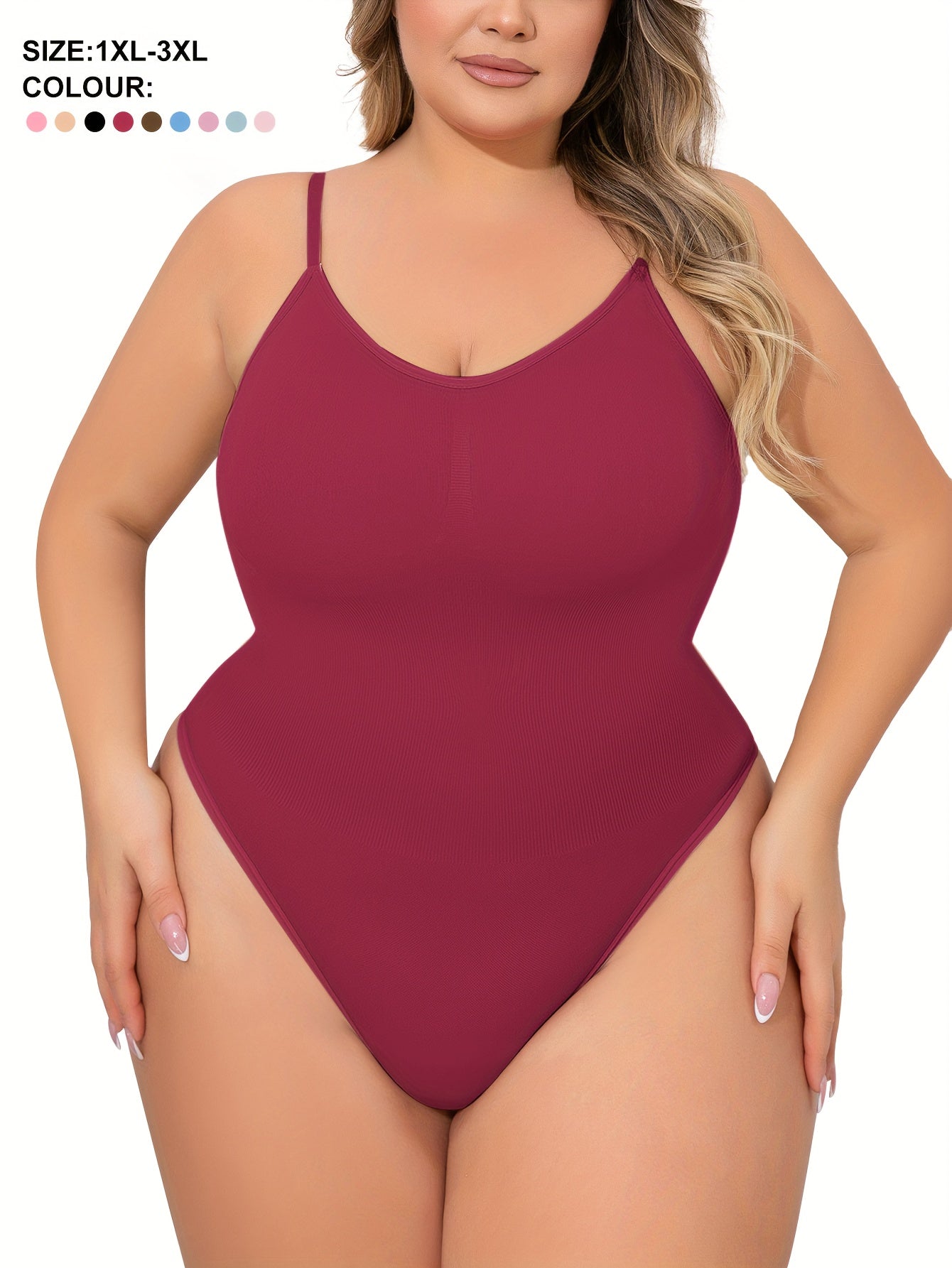 Plus Size Women's Adjustable Strap Bodysuit, One-piece Thong Bodysuit, Seamless Solid Color Bodysuit, Women's Underwear And Shapewear