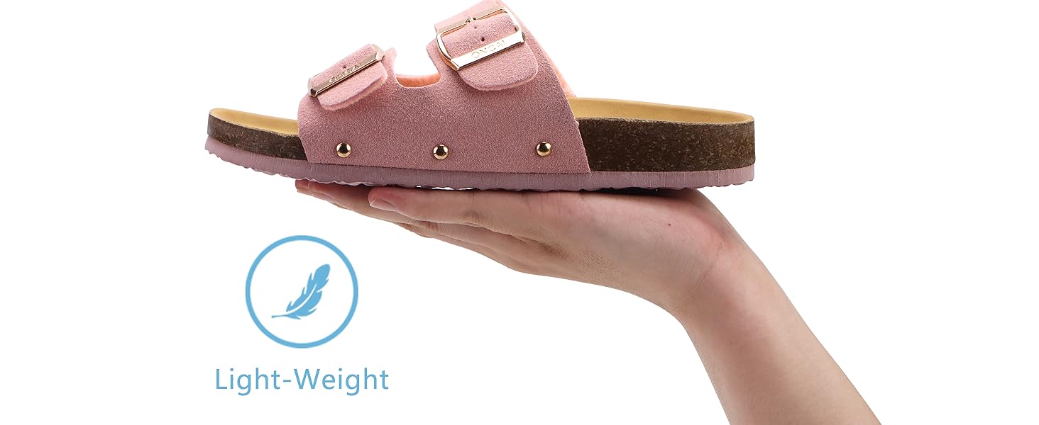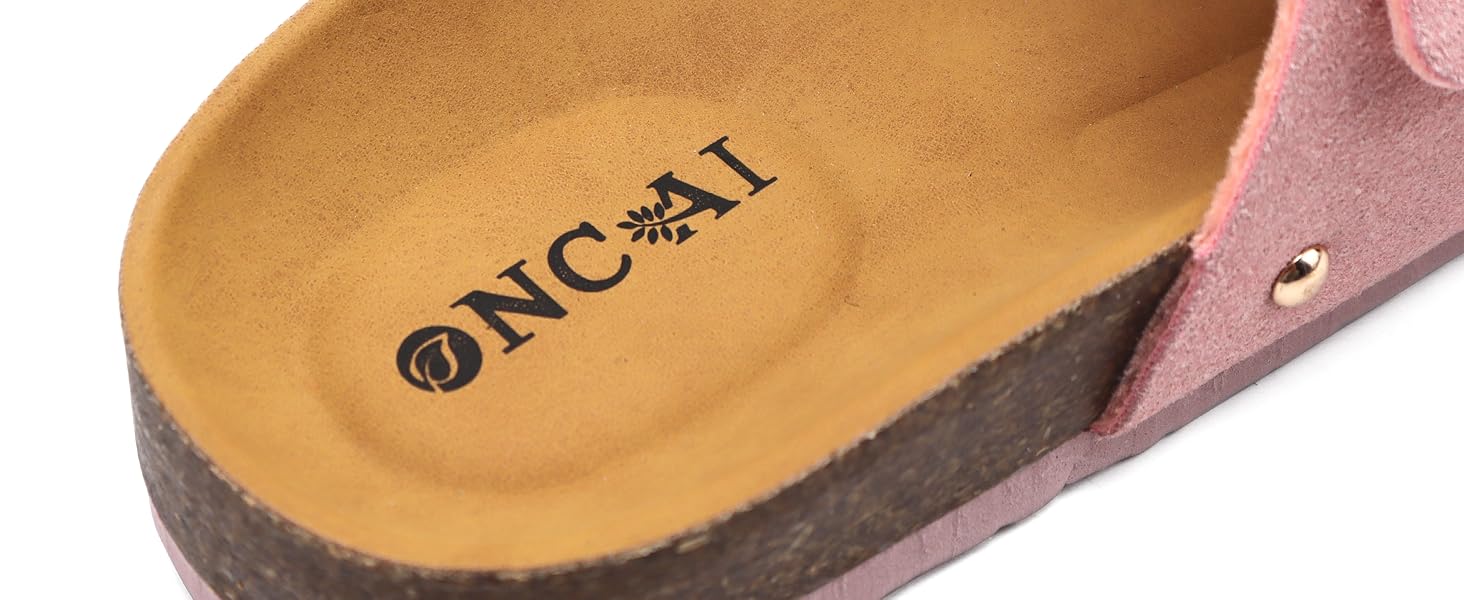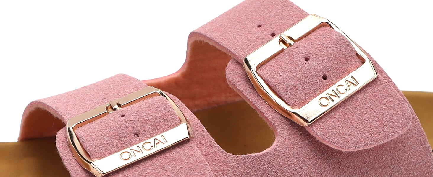 ONCAI Womens Flat Slide Sandals with Arch Support 2 Strap Adjustable Buckle Slip on Slides Shoes Non Slip Rubber Sole